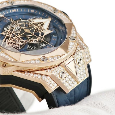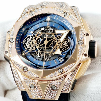 ウブロ HUBLOT ビッグバン ウニコ サンブルーII キングゴールド 418.OX.5108.RX.1604.MXM20 OH済 K18 ダイヤ メンズ 腕時計自動巻き ブルー 【中古】