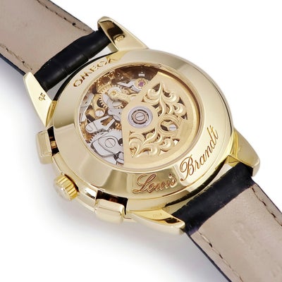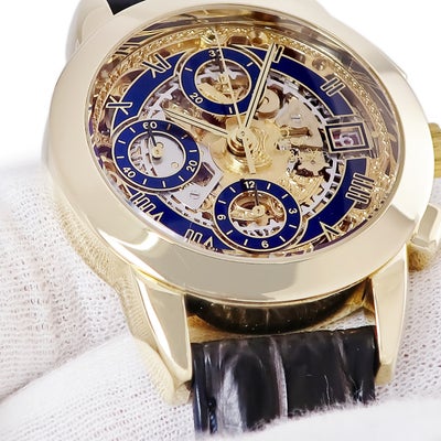 オメガ OMEGA ルイ ブラン ドゥルクス クロノグラフ 178.0503 K18YG無垢 スケルトン 青 ローマン デイト メンズ 腕時計自動巻き ゴールド 【中古】