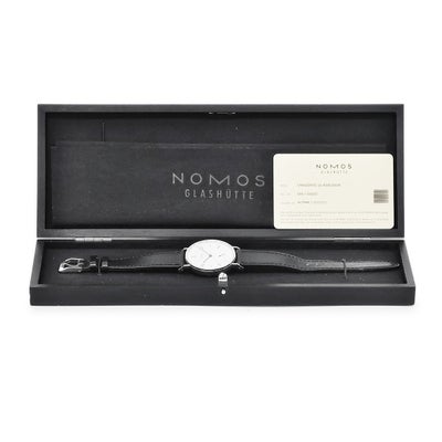 ノモス NOMOS タンジェント 139 スモールセコンド 青針 アラビア バー シースルーバック メンズ 腕時計手巻き シルバー 【中古】