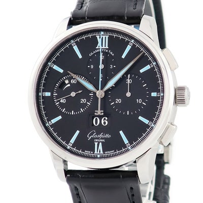 グラスヒュッテ オリジナル GLASHUTTE ORIGINAL セネタ クロノグラフ パノラマデイト 1-37-01-03-02-35 スモールセコンド メンズ 腕時計自動巻き ブラック 【中古】