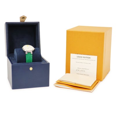 ルイヴィトン LOUIS VUITTON タンブール スリム MM レインボー QA159Z モノグラム ギョウシェ カラフル メンズ レディース 腕時計クオーツ シルバー 【中古】