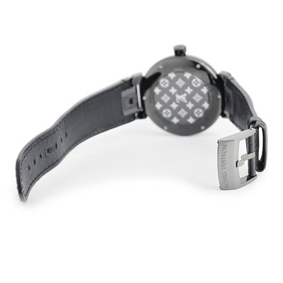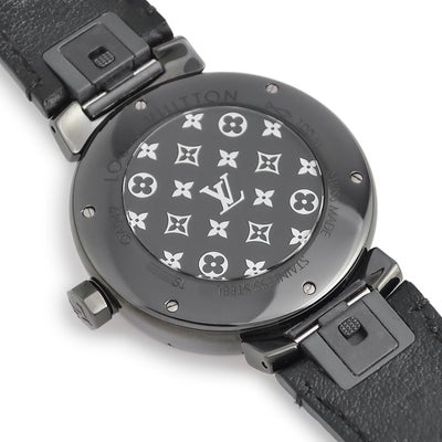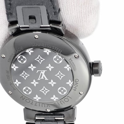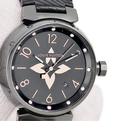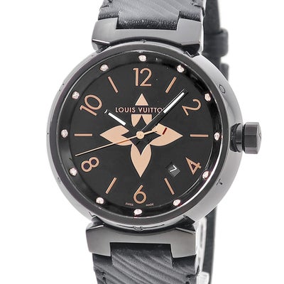 ルイヴィトン LOUIS VUITTON タンブール オールブラック GM QA049Z 純正ダイヤ 黒 ブラックPVD モノグラムフラワー メンズ 腕時計クオーツ ブラック 【中古】