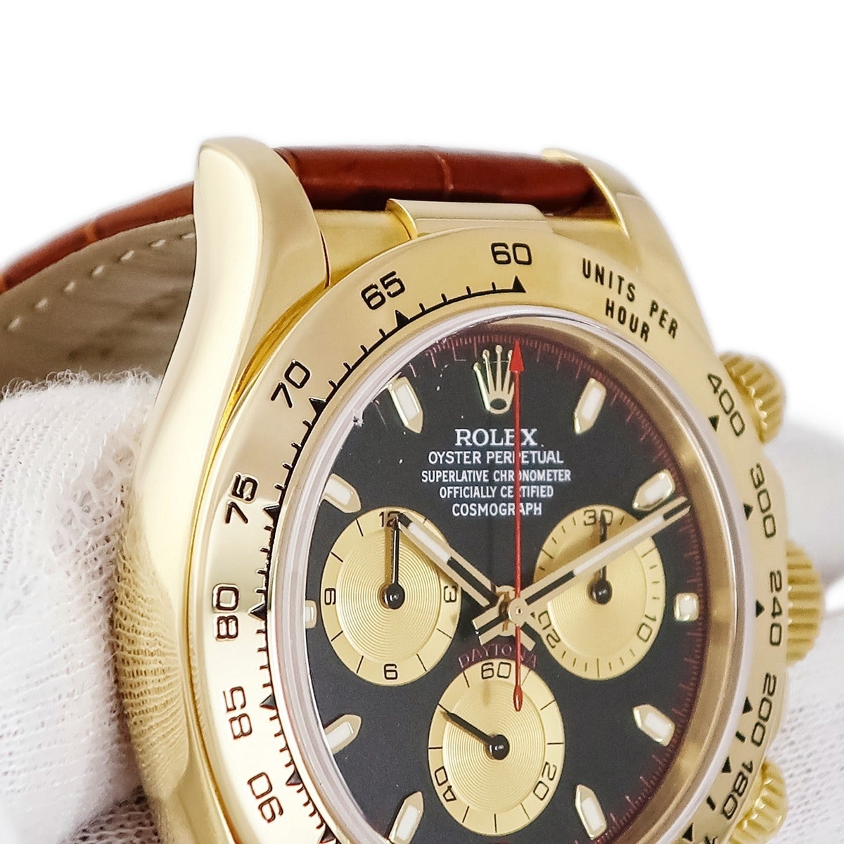 他の画像を見る ロレックス ROLEX コスモグラフ デイトナ 116518 D番 K18YG無垢 黒 金目 赤針 赤巻き ポールニューマン メンズ 腕時計自動巻き ブラック 【中古】 当店価格: ¥ 4,236,540 税込 在庫切れ 中古 詳細を見る