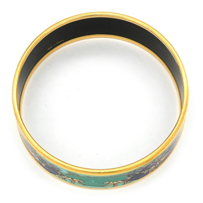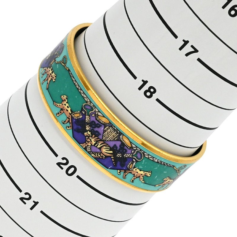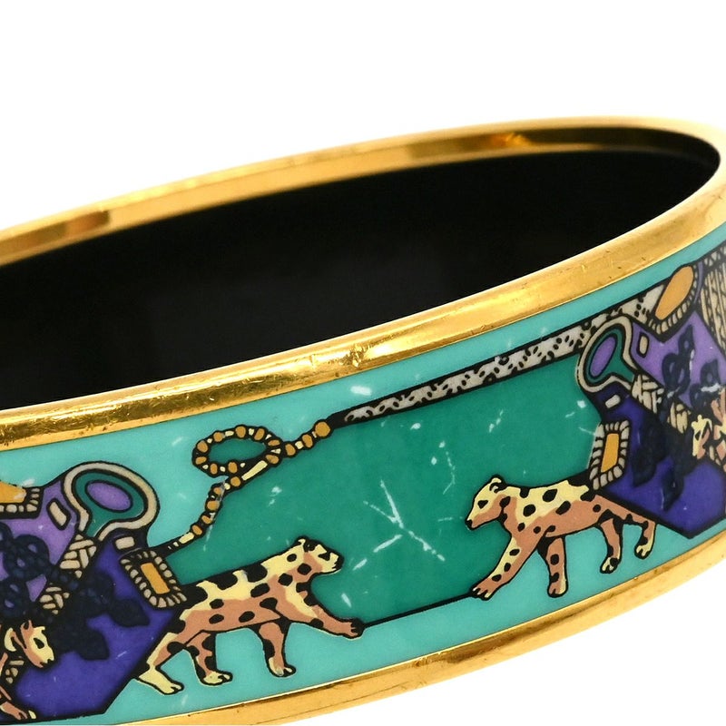 エルメス HERMES バングル エマイユ GM 七宝焼き グリーン×マルチカラー ゴールド金具 アニマル柄 ヒョウ トラ 【箱】 【中古】