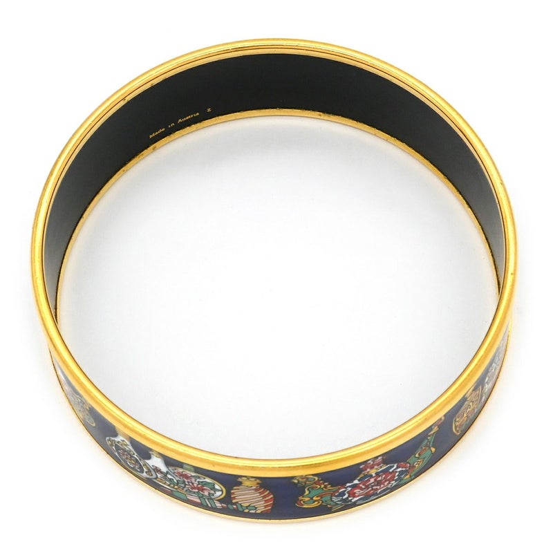 エルメス HERMES バングル エマイユ GM 七宝焼き ネイビー×マルチカラー ゴールド金具 紺 【中古】