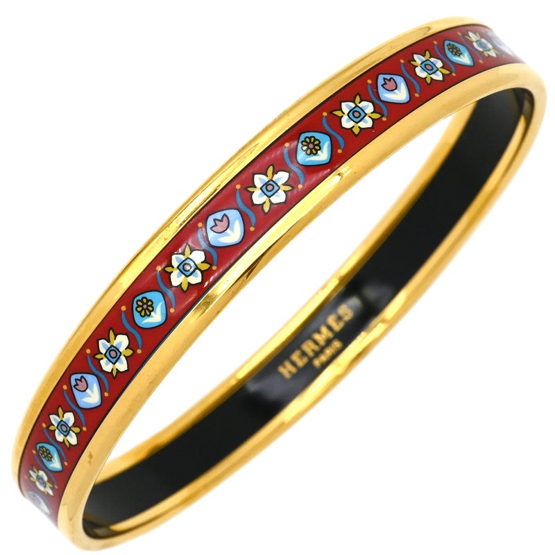 エルメス HERMES バングル エマイユ PM GP 七宝焼き レッドXマルチカラー ゴールド金具 花柄 ブレスレット 七宝 【箱】 【中古】