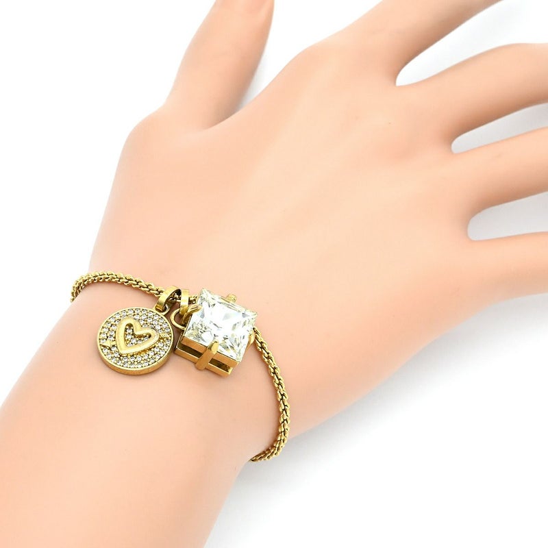 ミュウミュウ MIU MIU ブレスレット ハート クリスタル GP クリスタル ラインストーン ゴールド 【箱】 【中古】