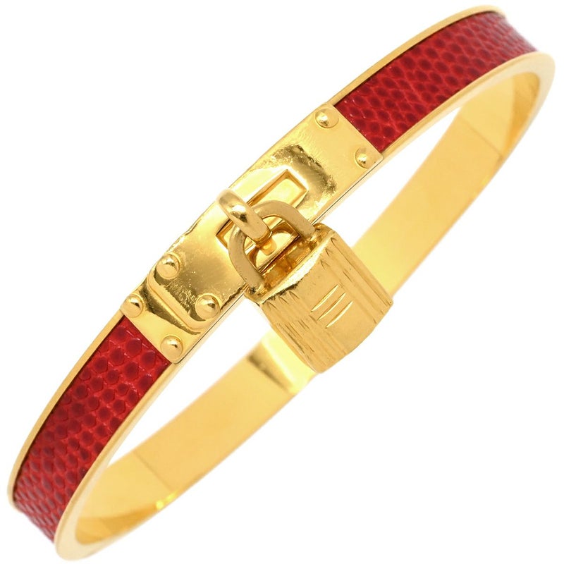 エルメス HERMES バングル ケリーバングル GP リザード レッドXゴールド ゴールド金具 カデナチャーム 【箱】 【中古】