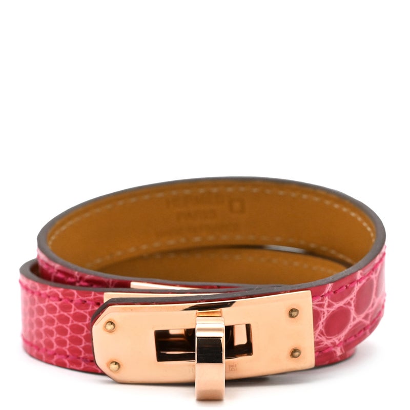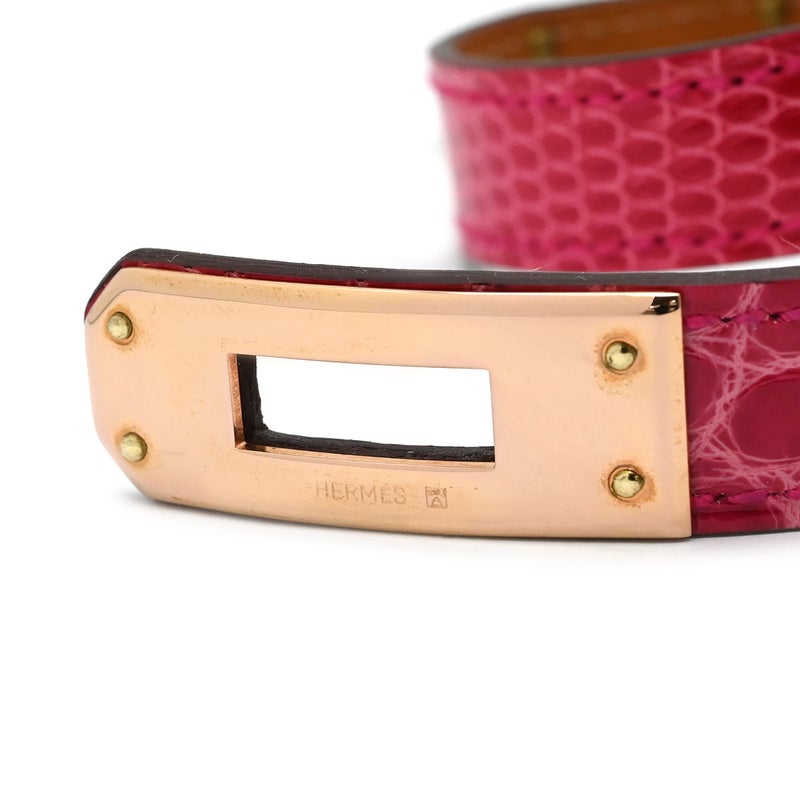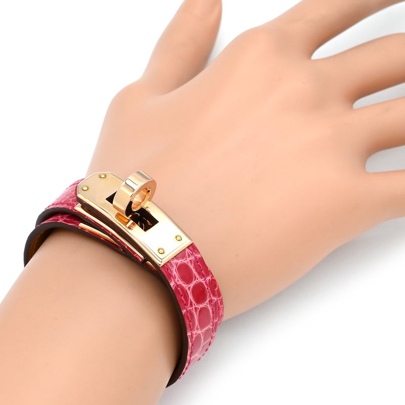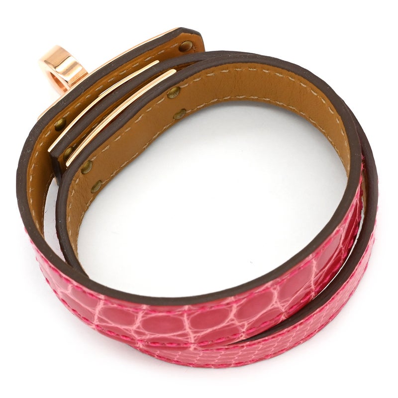 エルメス HERMES ブレスレット ミニ ケリードゥブルトゥール アリゲーター リザード GP ローズメキシコ×ゴールド T2 ピンクゴールド金具 2重 2連 U 【箱】 【中古】
