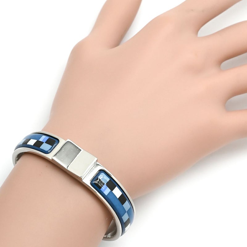 エルメス HERMES ブレスレット クリッククラック エマイユ メタル 七宝焼き ブルーXマルチカラー シルバー金具 ブルー 青 黒 白 バングル 【箱】 【中古】