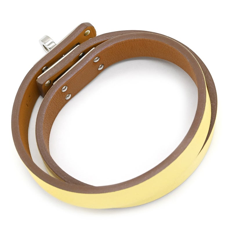 エルメス HERMES ブレスレット ミニ ケリードゥブルトゥール ヴォースイフト GP ジョーヌプッサン×ゴールド T2 シルバー金具 2重 2連 U 【箱】 【中古】