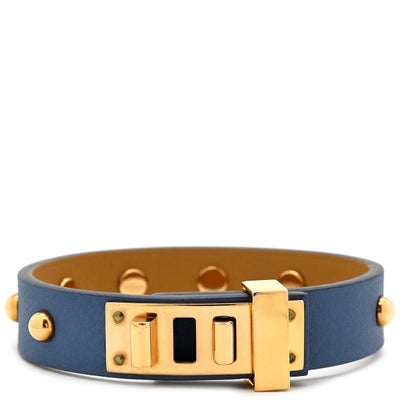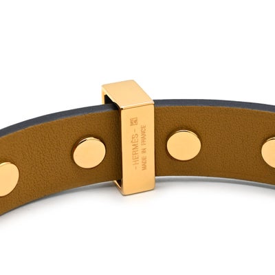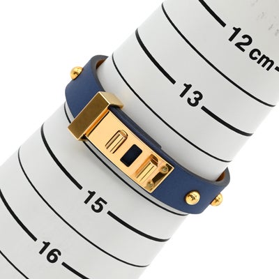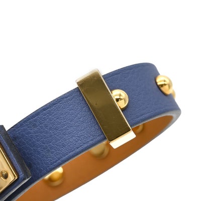 エルメス HERMES ブレスレット ミニドッグ クルーロン スイフト GP ブルー×ゴールド T1 レザーブレス 青 A 【中古】
