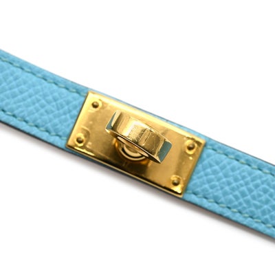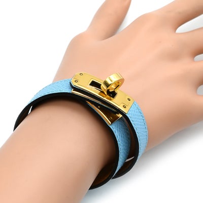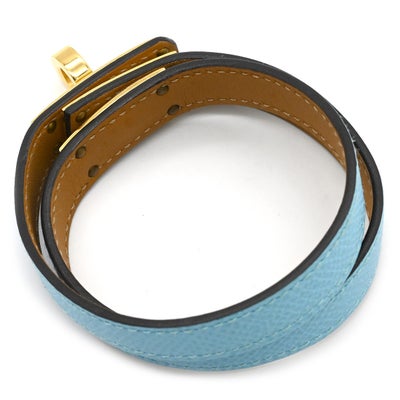 エルメス HERMES ブレスレット ケリードゥブルトゥール ヴォーエプソン GP ブルーXゴールド T4 青 2重 2連 ケリークラスプ U 【箱】 【中古】