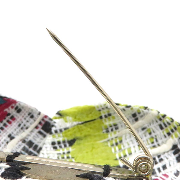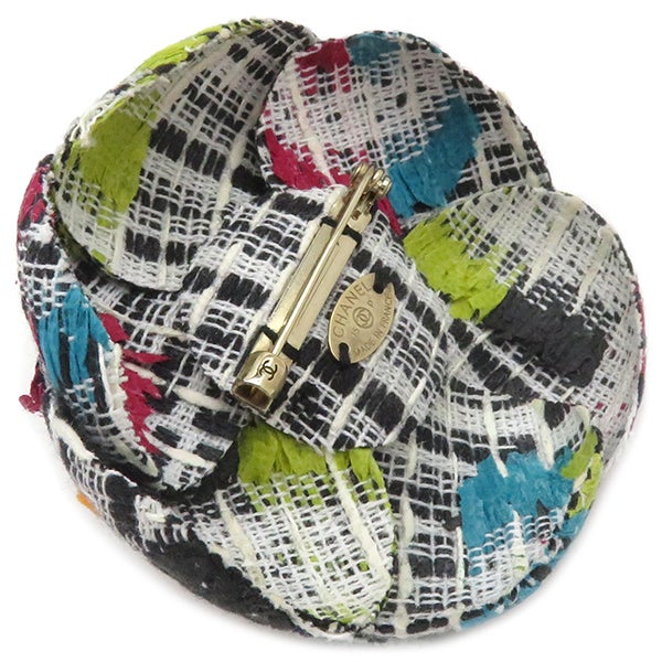 シャネル CHANEL ブローチ カメリア ブローチ ツイード ブラック×ホワイト×マルチカラー シルバー金具 コサージュ フォーマル セレモニー 【箱】 【中古】