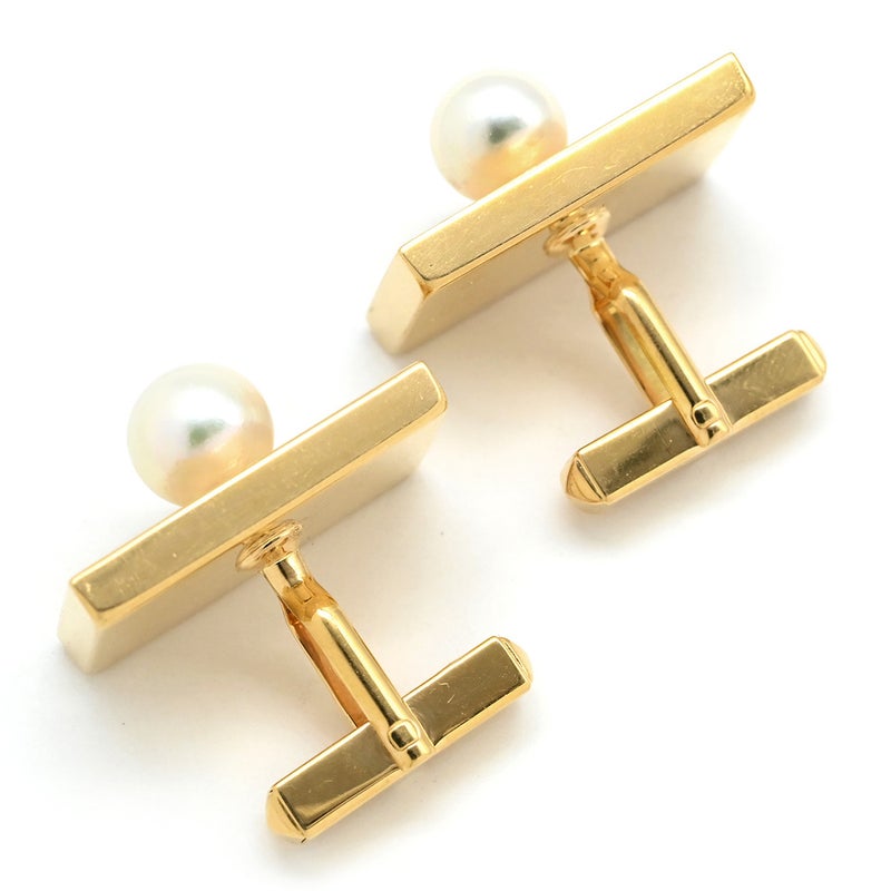 カフス パール タイピン セット ホワイト×イエローゴールド K18YG Au750 18K 18金 あこや アコヤ 真珠 タイタック ピンズ 【中古】
