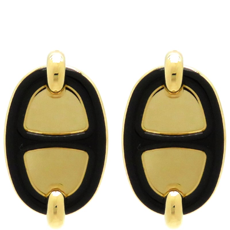 エルメス HERMES ピアス ミニマイヨン GP エナメル ブラックXゴールド ゴールド金具 シェーヌダンクル 黒 【箱】 【中古】