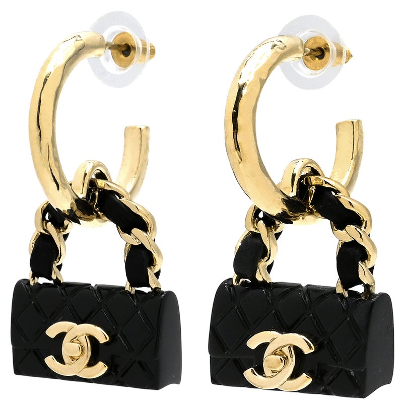 シャネル CHANEL ピアス マトラッセバッグ モチーフ フープ GP レジン ブラック×ゴールド シャンパンゴールド金具 ココマーク CCマーク ABA009 B23C 【箱】 【中古】