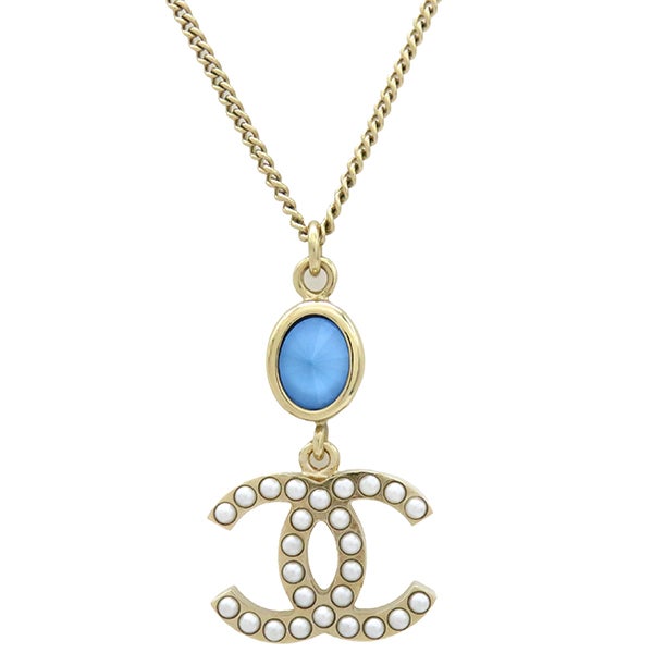 シャネル CHANEL ネックレス ココマーク スイングネックレス GP フェイクパール カラーストーン ブルーXゴールド オーバルストーン 【ケース】 【中古】