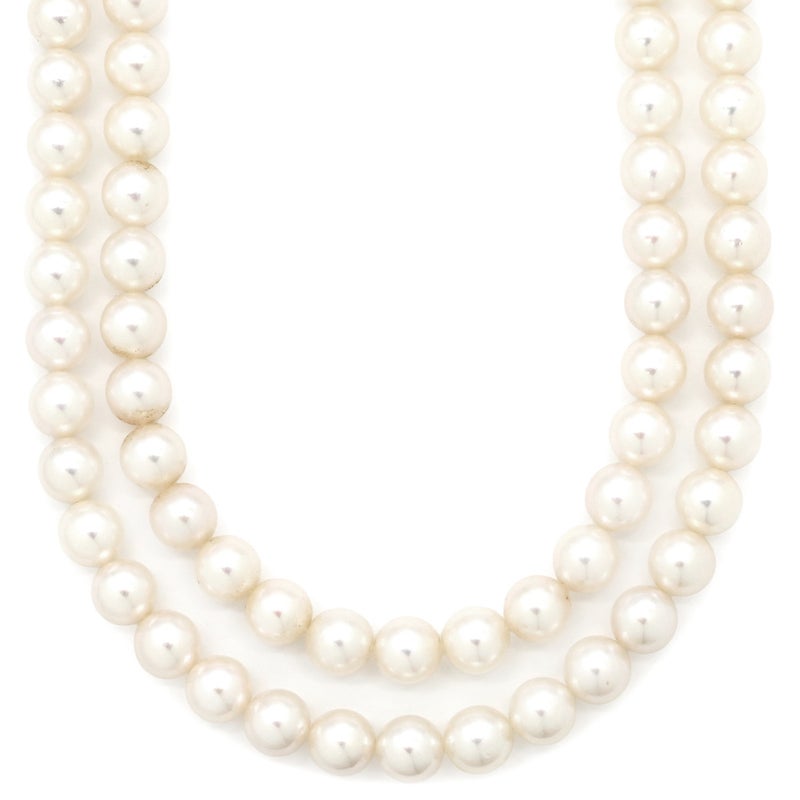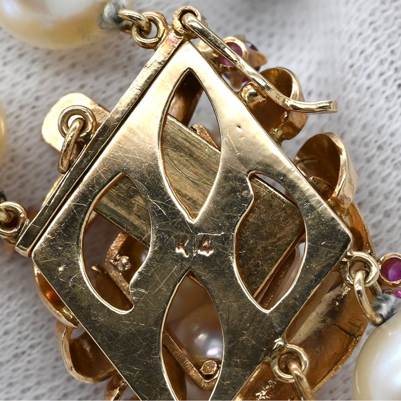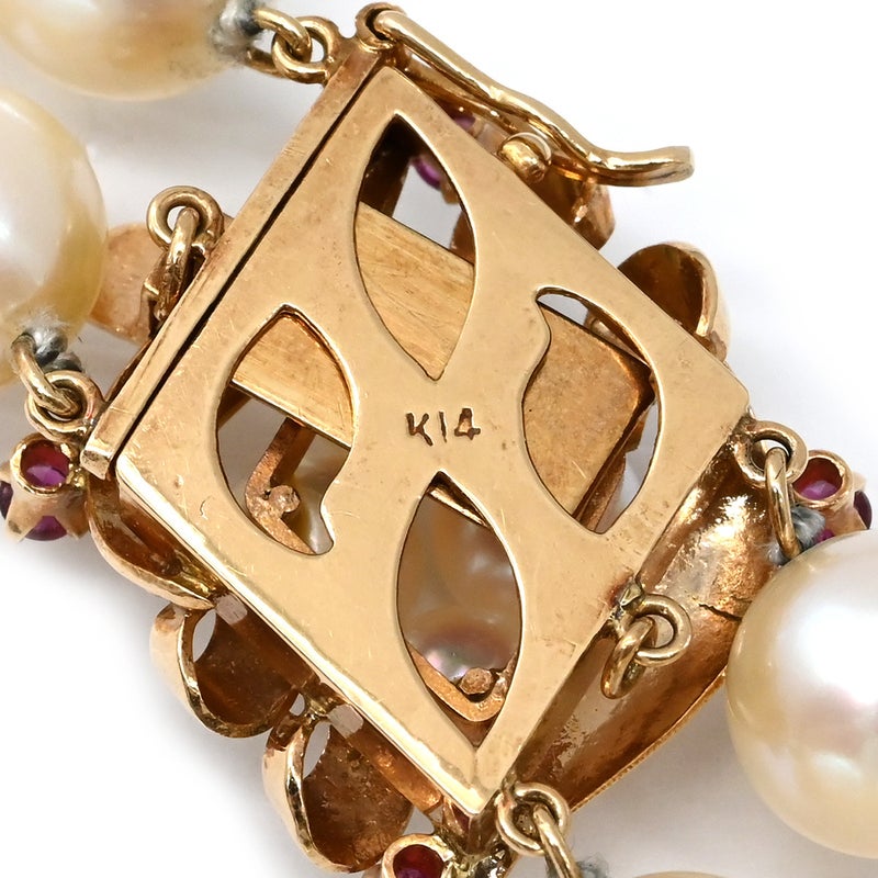ネックレス あこやパール 8.5mm 4Pルビー 2連 パールホワイトXゴールド 真珠 アコヤパール 白 ピンク ラウンドシェイプ 【中古】