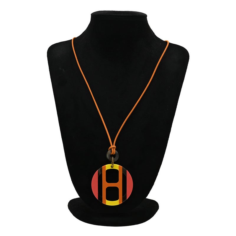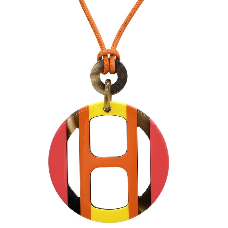 エルメス HERMES ネックレス Hエキップ バッファローホーン レザー ラッカー サンセット オレンジ イエロー ベージュ バッファローホーン 【中古】