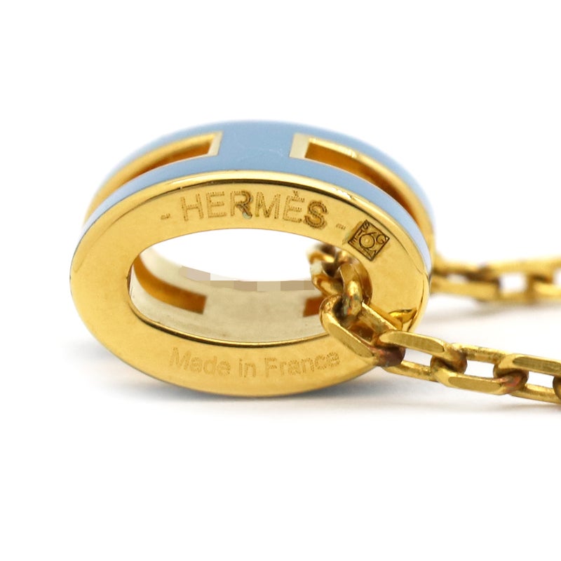 エルメス HERMES ネックレス ポップアッシュ ミニ ペンダント GP ラッカー ブルーXゴールド ゴールド金具 青 Hモチーフ 【箱】 【中古】