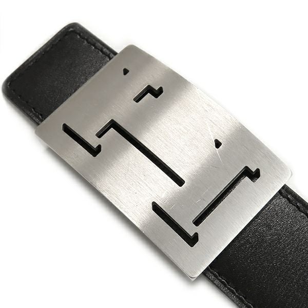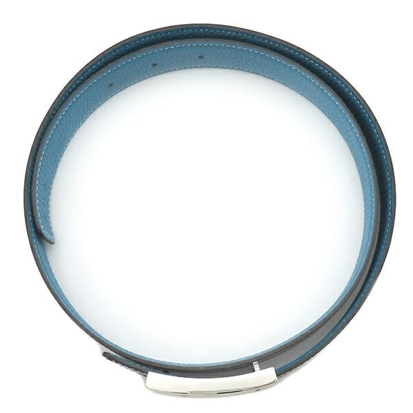 エルメス HERMES ベルト Hベルト ラッキーメタル ボックスカーフ トゴ ブラック×ブルージーン #85 シルバー金具 Hモチーフバックル 黒 青 リバーシブル □K刻印 【箱】 【中古】