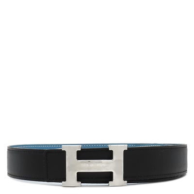エルメス HERMES ベルト コンスタンスH ボックスカーフ トゴ ブラック×ブルージーン #75 シルバー金具 Hバックル リバーシブル □H 【中古】