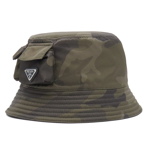 プラダ PRADA ハット Re-Nylon ポケット バケットハット ナイロン カモフラージュ L 迷彩 三角ロゴプレート 2HC350 【中古】