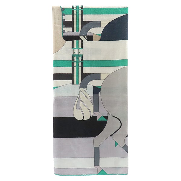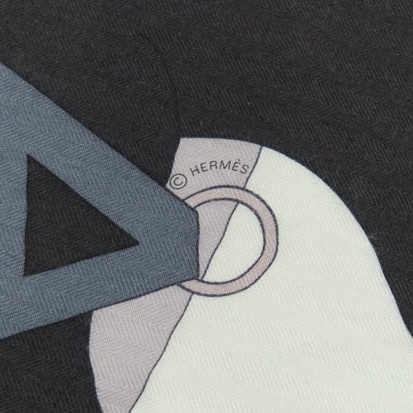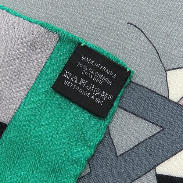 エルメス HERMES ストール カレ140 カレジェアン カシミヤ シルク ミント×グリ×ブラック 【ROCABAR /ロカバール】 2018AW 【中古】