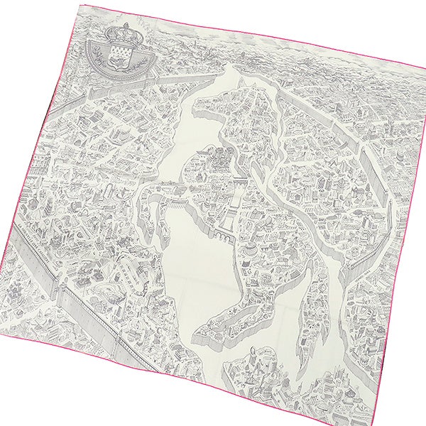 エルメス HERMES ストール カレ140 カレジェアン カシミヤ シルク ホワイト×グリス×ローズ 新品 未開封 【 ヌーベル シテ カヴァリエール 】 H244273S 10 【箱】 【中古】