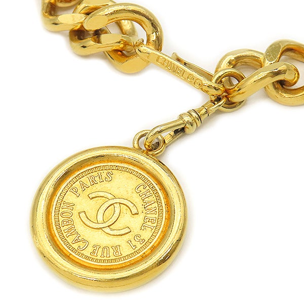 シャネル CHANEL ベルト ココマーク チェーンベルト GP ゴールド ヴィンテージ コインモチーフ ロゴプレート 【箱】 【中古】