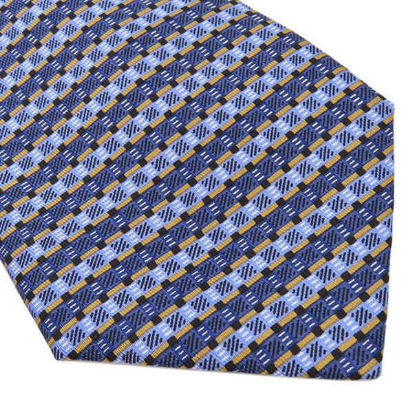 他の画像を見る エルメス HERMES ネクタイ 総柄 9cm シルク ブルー系 変形 ストライプ 青 水色 ゴールド 【中古】 HERMESネクタイ 当店価格: ¥ 13,720 税込 中古 カートに入れる