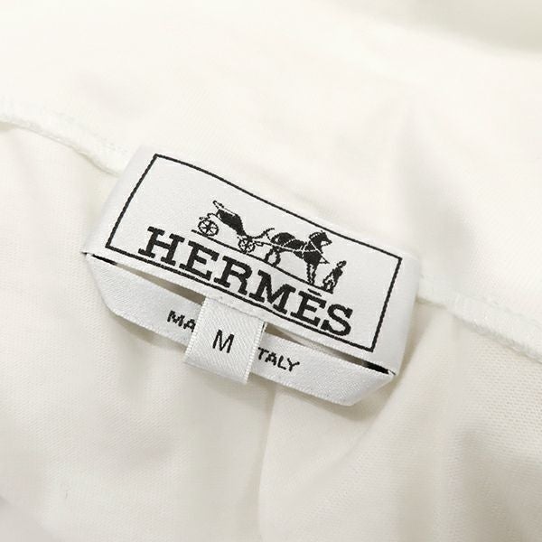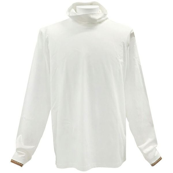 エルメス HERMES トップス タートルネック カットソー コットン ホワイト×ブラウン M 白 茶 長袖 ハイネック 【中古】