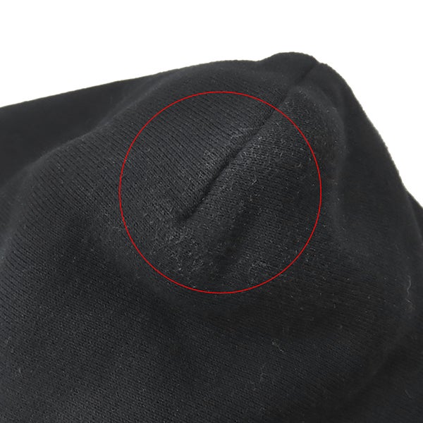 表面生地に使用による擦れやシワ、毛羽立ちや毛玉、紐にシミ汚れ、内側全体的に若干の毛玉感、首周りや袖リブに薄汚れがございます。