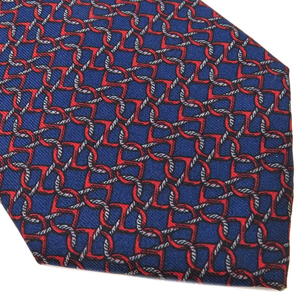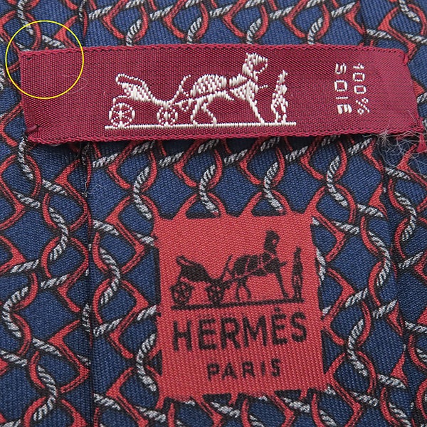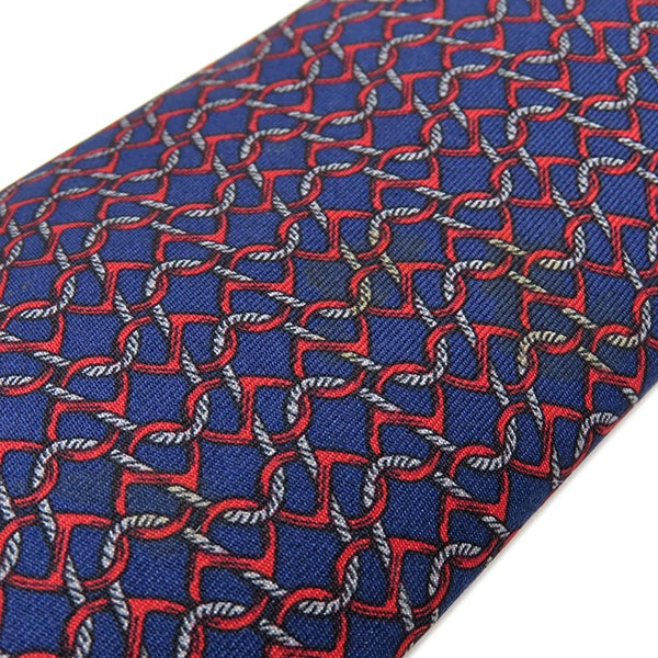 エルメス HERMES ネクタイ 総柄 8cm シルク ネイビー×レッド シェーヌダンクル 【中古】