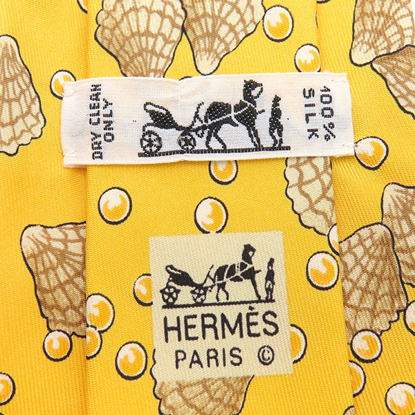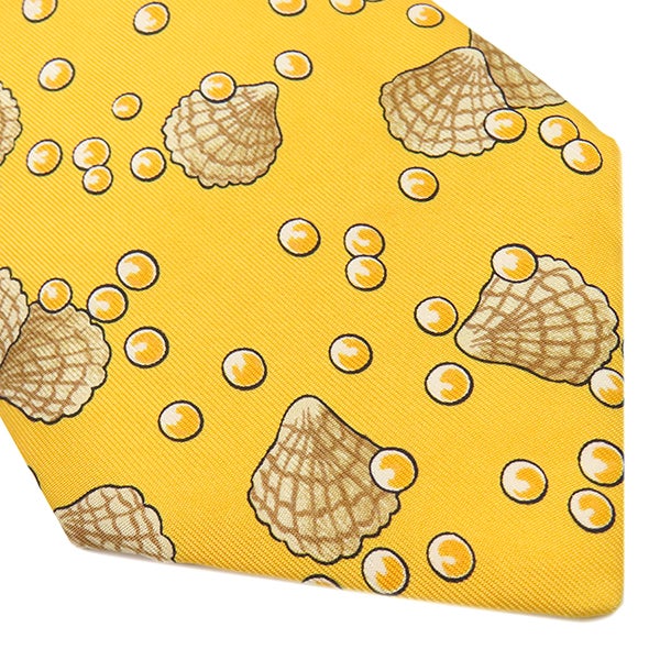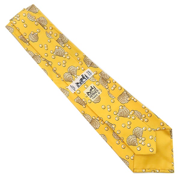 エルメス HERMES ネクタイ クラバット 9cm シルク イエロー 貝柄 貝殻 真珠 【中古】