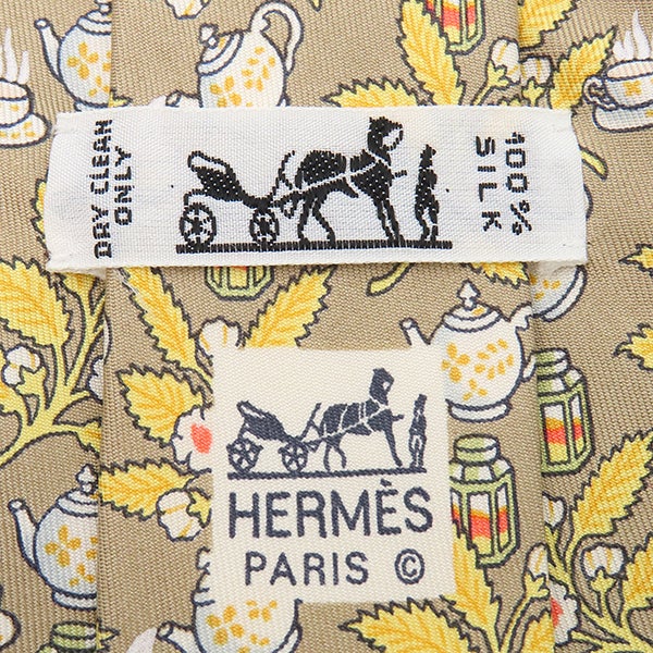 エルメス HERMES ネクタイ クラバット 9cm シルク ベージュ×マルチカラー 植物柄 ティーポット 【中古】