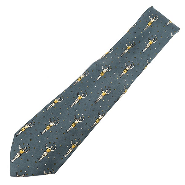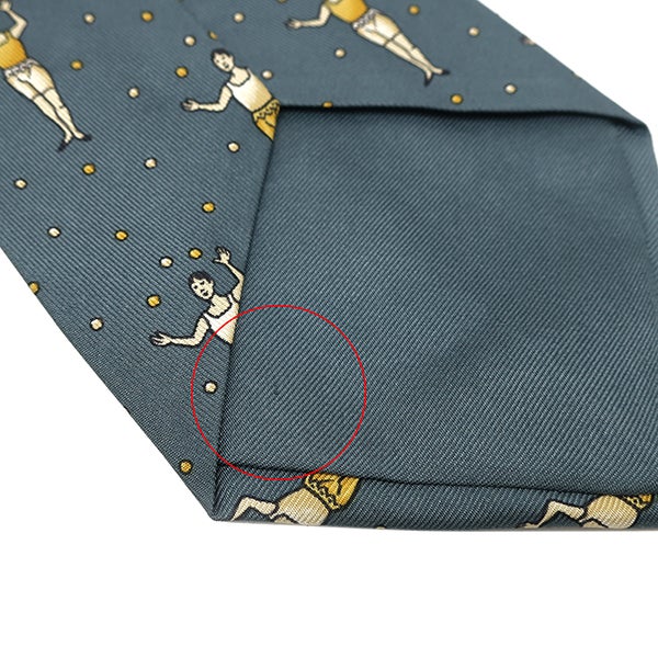 エルメス HERMES ネクタイ ジャグリング 9cm シルク グリーン×イエロー 青緑 黄色 人モチーフ 【中古】