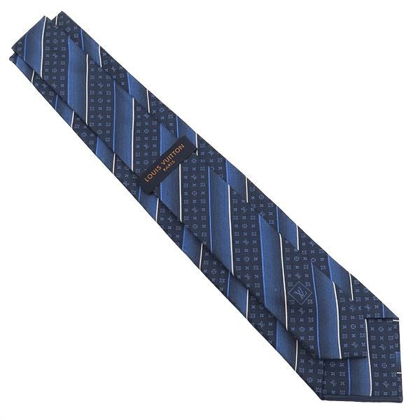 【SALE】 ルイヴィトン LOUIS VUITTON ネクタイ モノグラム ストライビー 8cm シルク ネイビー M70958 【箱】 【中古】