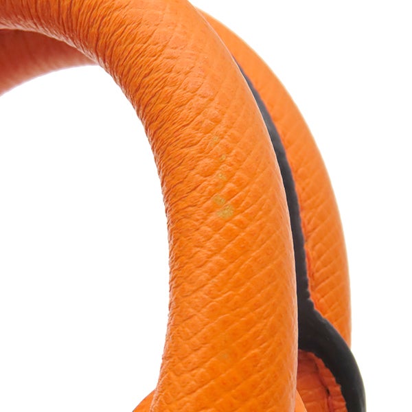 【外側】四つ角やハンドルに僅かな剥げ、表面僅かな薄汚れ、フチに僅かな擦れやヒビ、金具に小傷やくすみ、ネームタグに金具汚れ【内側】擦れや薄汚れ【におい】保管臭