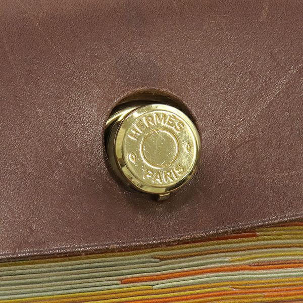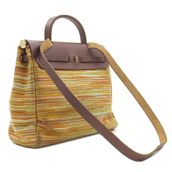 エルメス HERMES 2WAYバッグ エールバッグ PM ヴィブラート トワルオフィシエ ヴァッシュハンター オレンジ系 ゴールド金具 オレンジ 茶 ショルダー ハンドバッグ □F刻印 【保存袋】 【中古】
