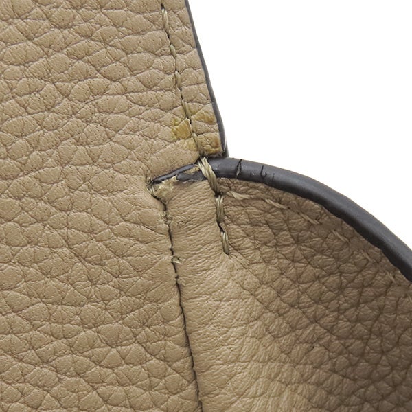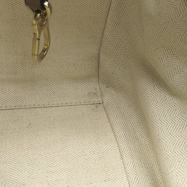 【外側】表面に僅かな薄汚れ、茶レザーに僅かな擦れや黒い汚れ、コバにヒビ、ハンドルに僅かな薄汚れ、ショルダーに僅かな穴の広がり【内側】薄汚れやボンド汚れ【におい】保管臭