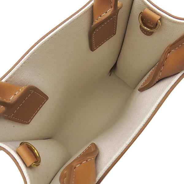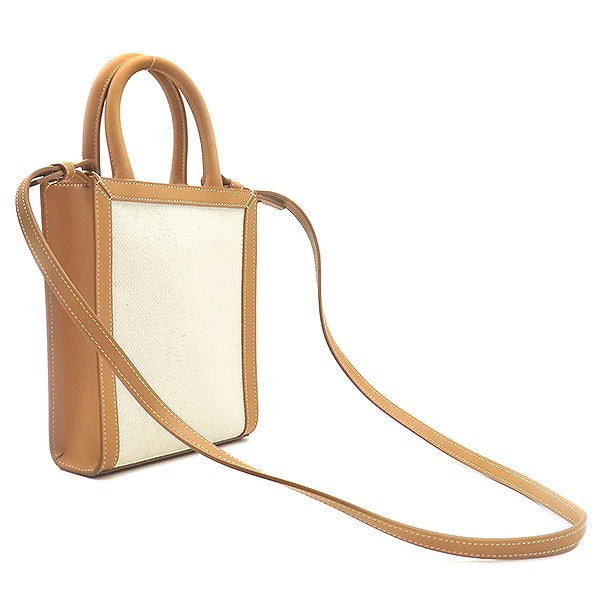 セリーヌ CELINE 2WAYバッグ ミニ バーティカル カバ キャンバス レザー ナチュラル×タン ゴールド金具 アイボリー 茶 ハンドバッグ ショルダー 193302 【保存袋】 【中古】