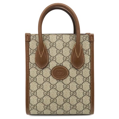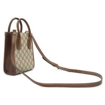 グッチ GUCCI 2WAYバッグ インターロッキングG ミニトート GGスプリームキャンバス ブラウン ゴールド金具 PVC×レザー 671623 【保存袋】 【中古】