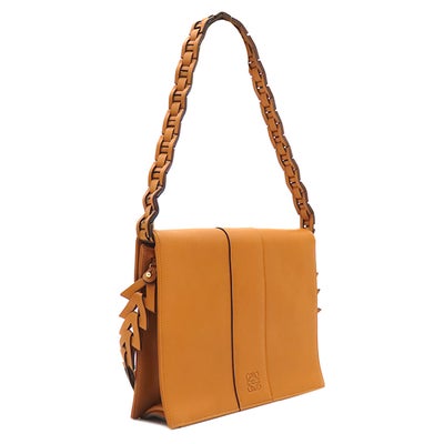 ロエベ LOEWE 2WAYバッグ フラップバッグ レザー ブラウン ゴールド金具 ハンドバッグ ショルダー 編み込み 【保存袋】 【中古】