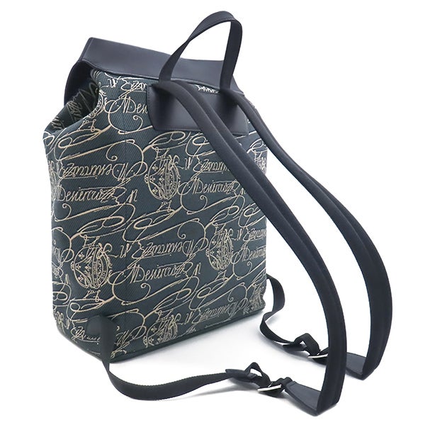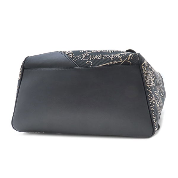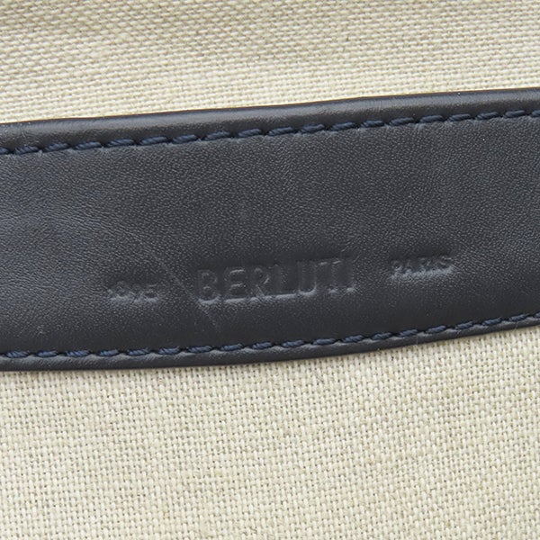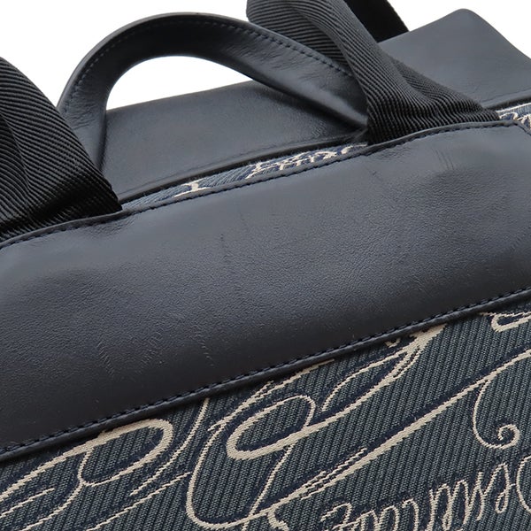 ベルルッティ BERLUTI リュック・デイパック スクリットアラベスク バックパック キャンバス レザー ネイビー×アイボリー シルバー金具 バックパック 【中古】