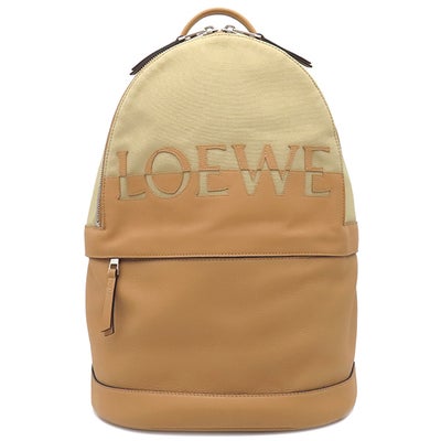 ロエベ LOEWE リュック・デイパック ロゴ バックパック キャンバス レザー ベージュ系 シルバー金具 薄茶 B314278X013968 【中古】