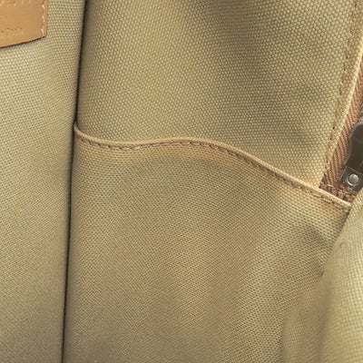【外側】表面生地に擦れや薄汚れ、レザーやハンドルに僅かな擦れ、ファスナープルに僅かな切れ傷、ショルダーに毛羽立ちやクセ、金具に擦れや小傷【内側】僅かな擦れ、フチに接着剤の浮き【におい】保管臭