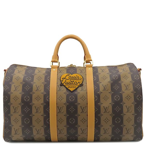 ルイヴィトン LOUIS VUITTON ボストンバッグ キーポル バンドリエール 50 モノグラムキャンバス モノグラムストライプキャンバス ブラウン系 ゴールド金具 NIGO 茶 鍵・パドロック欠品 M45967 RFID 【保存袋】 【中古】