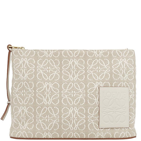 ロエベ LOEWE クラッチバッグ オブロング アナグラム ポーチ コットン エクリュ ゴールド金具 ジャガード クラッチ ポーチ C730C63X15 【保存袋】 【中古】